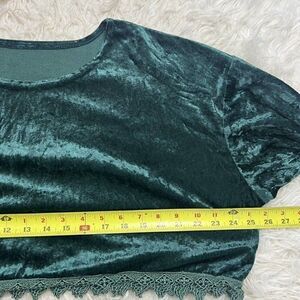 Womens Long Sleeve Velvet Cropped Top Emerald Green Lace Brocade Flair Trim Lrg