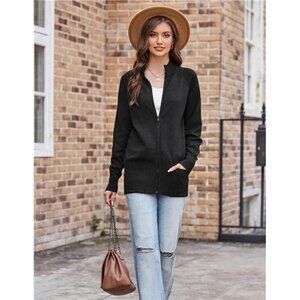 Women's Long Sleeve Zip Up Knit Cardigan with Pockets Stand Collar