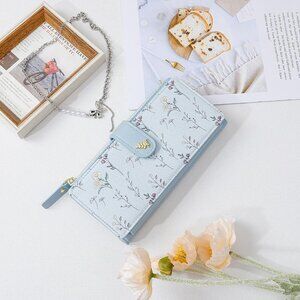 Features: A cute floral patterned wallet made of soft polyurethane, with multiple compartments including a dedicated coin pouch, 20 card slots, 2 ID windows, 3 receipt slots, and a zipper pocket. Easy to access and perfect for busy days or travel.