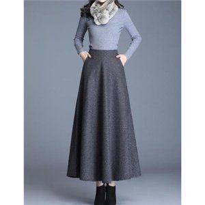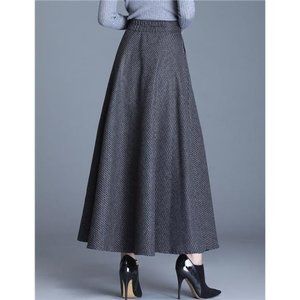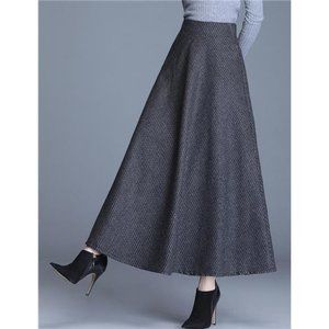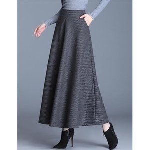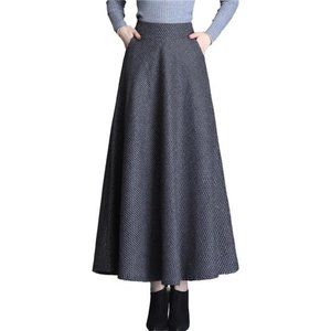 Women's Long Wool Plaid Skirt Fall Winter A Line Flared Maxi Skirt, Dark Gray