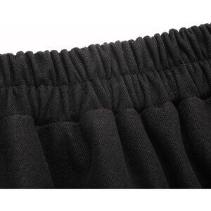 Womens LongPure Black Elastic Waist A-Line Pleated Tartan Long Plaid Wool Skirts