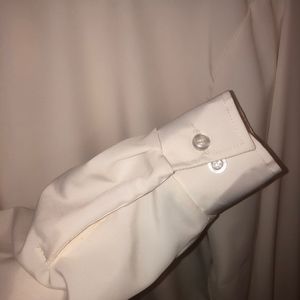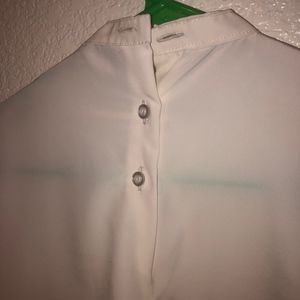 Neckband has button holes in the front and back to attach a (full) clergy collar.