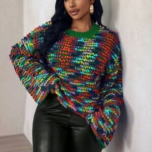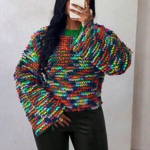 Women's Loose Fit Pullover Sweater, Long Sleeve, Multi-Color, Autumn/Winter