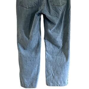 Women's Loose Straight High Waist Light Wash Blue Denim Destroyed Ripped Jeans