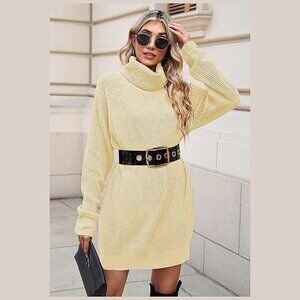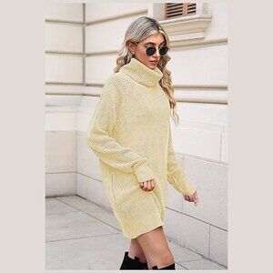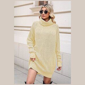 Women's Loose Turtleneck Oversize Long Pullover Sweater Dress Rouge Rose Pink