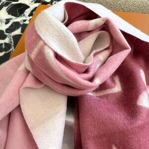 Step into luxury with this gorgeous Louis Vuitton scarf in a captivating pink hue. Meticulously crafted from top - notch materials, it's the perfect blend of comfort and high - fashion style. The iconic Louis Vuitton monogram and text are elegantly displayed in a lighter shade, adding an unmistakable touch of opulence.
