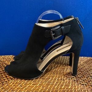 Women’s Louise et Cie Olivia Black Suede Buckle Detail Strap Open Toe Heels 11