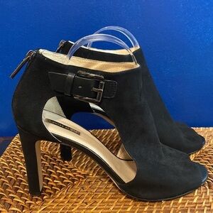 Women’s Louise et Cie Olivia Black Suede Buckle Detail Strap Open Toe Heels
