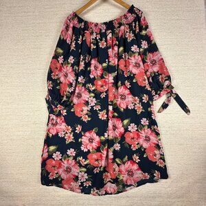 Womens Love J S 2X Off-Shoulder Floral Dress Navy & Pink Romantic Coquette Soft
