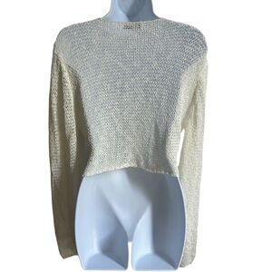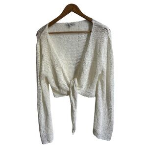 This cozy cream knit sweater features a stylish tie-front design, perfect for layering. Its soft knit fabric offers comfort and style for any casual occasion, whether you’re at the beach or dancing at a festival. Great condition from a smoke-free home.