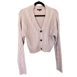Women's Love Tree Cable Knit Cardigan Sweater in Light Pink Size Small