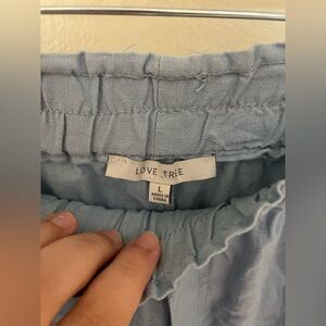 Women’s love tree linen shorts size large. 2 side pockets. Baby blue in color. Excellent condition.