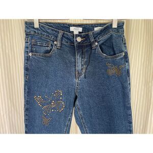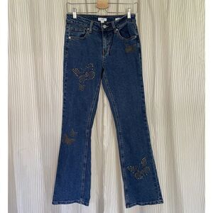 Womens Low Rise Bootcut Jeans Size 28 Dark Wash Butterfly Studded Y2K Denim