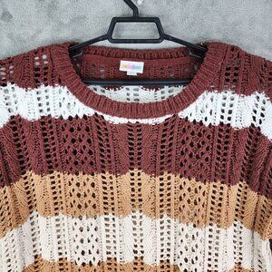 Womens LuLaRoe Open Knit Mariah Sweater Multicolor Striped Long Sleeve Size XL