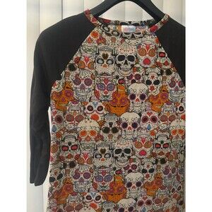 Women's LuLaRoe Randy Baseball Shirt Halloween Sugar Skulls Print Size X-Small