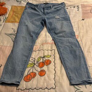 Worn several times but in good condition. Jeans are Lucky Brand, Mid Rise Ava Skinny Jeans in light wash. They are a size 8/29.