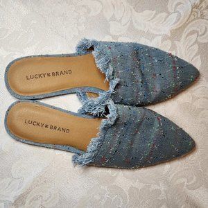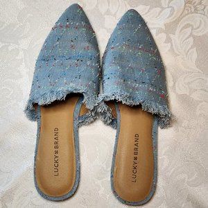 Women's Lucky Brand Bapsee Chambray Fringe Mules