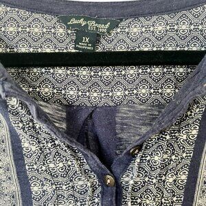 Women's Lucky Brand Blue Patterned Boho 3/4 Length Sleeve Top Size Large