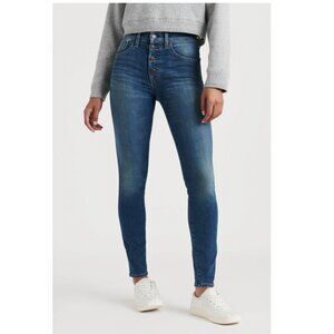 denim blue jean skinny high rise slim casual medium light wash clean button closure fly bridgette