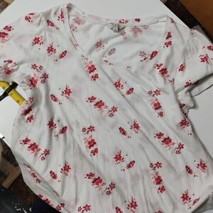 Women's Lucky Brand Cotton Modal Round Neck Short Sleeve Basic T Floral Size L