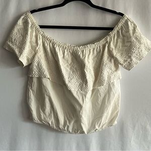 Women's Lucky Brand Cream Embroidered Off the Shoulder Ruffle Top