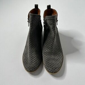 Womens Lucky Brand Gray Suede Leather Perforated Ankle Booties Boots