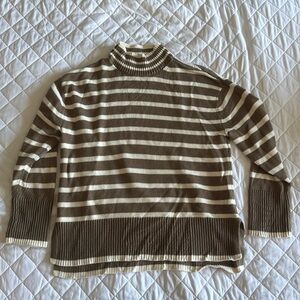 Chilly days calls for this cozy long sleeve top. Spun from soft, recycled cotton-knit, this striped style has a comfy mock neck and ribbed details in a long, tunic silhouette. Smoke free