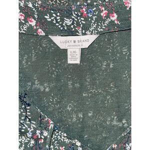 Womens Lucky Brand Olive Green Floral Sheer Cap Sleeve Blouse Size L