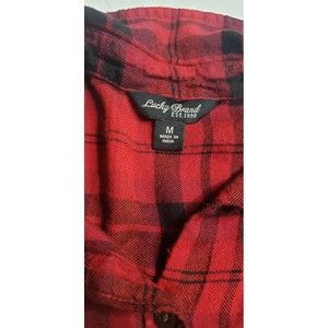 Women's Lucky Brand Red Black Buffalo Plaid Soft Button Down Split Hem Back Sz M. Pre-owned condition. Small defect in back shoulder seam shown in picture. Super soft buttery fabric and cute back button split hem. Zoom in on pictures for condition.