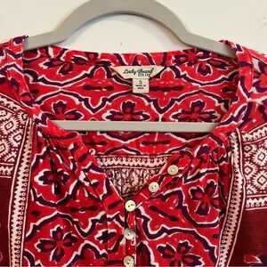 Women’s Lucky Brand red patterned long sleeve blouse size small S