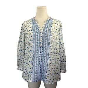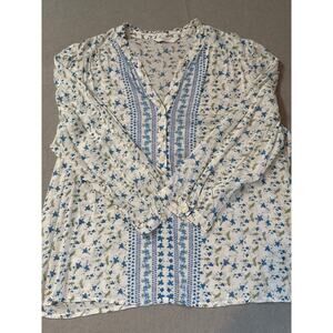 Women’s Lucky Brand white blue floral boho peasant top NWT Sz L