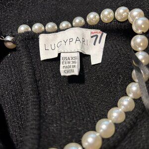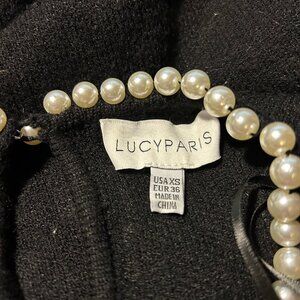 Womens Lucy Paris 71 Black Long Sleeve Carlota Pearl Bead Collar Sweater XS