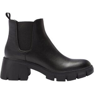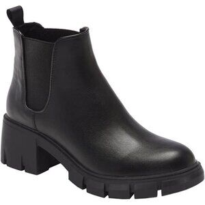 Womens Lug Sole Platform Ankle Booties Chelsea Slip on Chunky Block Heel Leather