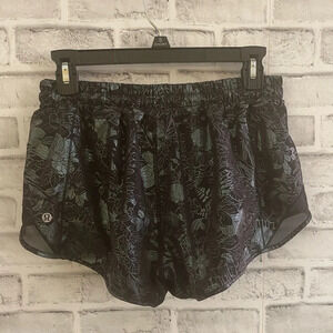 Women’s. Lululemon. Athletic shorts. Hotty hot. 2.5 inch inseam. Iridescent leaf print. Discontinued print. Near perfect condition- no stains/tears. Size 8.