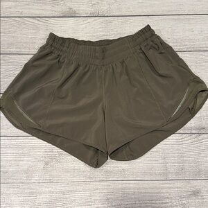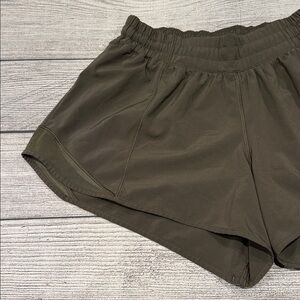 🍋Women’s Lululemon Hotty Hot Short Long 4” ⚠️NO LINER⚠️size 8 tall army green🍋