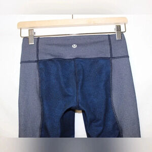 Women’s Lululemon Wunder Under Crop Sashiko Size 4. These are in the color way Sashico Cross Inkwell Rugged Blue / Inkwell / Diamond Dot Inkwell Black which is a blue color way. These are in good used condition with no flaws.