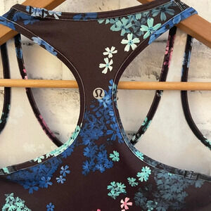 Women’s Lululemon cool racerback tank top black with flowers size 4