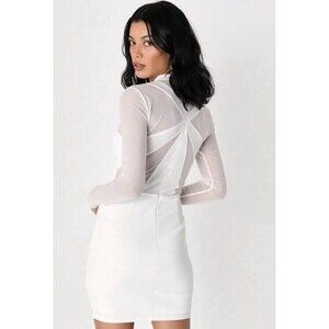 Women’s Lulu’s Living The Spotlight White Mesh Long Sleeve Mini Dress M Bride