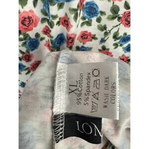 Women’s Lumion Blue & Pink Floral Patterned T-Shirt Sz XL. Made from 95% cotton, 5% spandex.