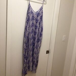 Womens Lush Royal Blue and White Abstract Print Maxi Dress with pockets