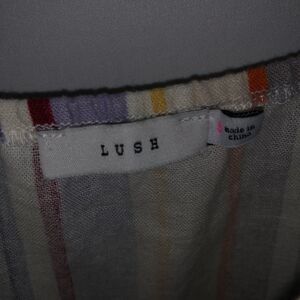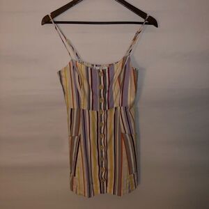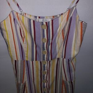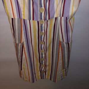 Size Small Sleeveless Vertical Stripes Muted Rainbow Button Front with Pockets Cream Yellow Purple Orange