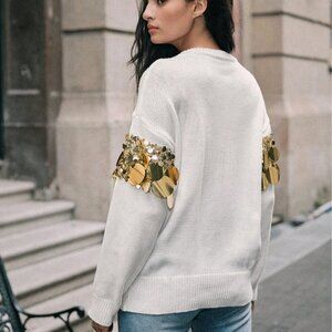 Women's Luxurious stylish Sequin detailed Long Sleeve Sweater top