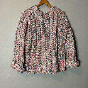 Women's Luxury Chunky Crochet Cardigan Multicolor Pastel Size L/XL