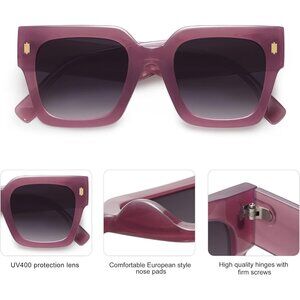 Women's Luxury Large Vintage Oversized Square Eyes Protecting Purple Sunglasses