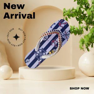 Women's Luxury nautical flip flops, with crystals and rhinestones, all occasions