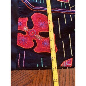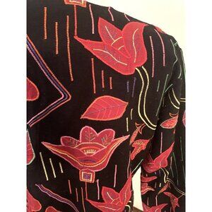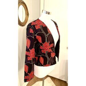 Women’s M Black Red Floral Jacket Embroidered Open Front Art to Wear Black boho