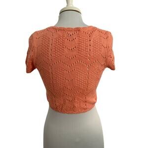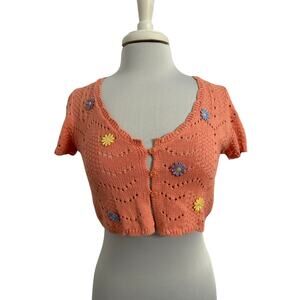 Womens M Cottagecore Floral Daisy Crochet Knit Crop Cardigan Sweater Boho Preppy