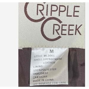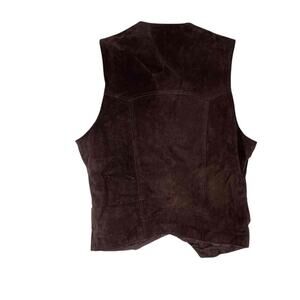 Genuine vintage suede leather vest by Cripple Creek in a deep brown shade. Size Medium. Western-inspired silhouette with front welt pockets and signature metal concho-style buttons. An ideal layering piece for fall, winter, and transitional weather—perfect for cowboycore, equestrian looks, or dapper Oak Bluffs styling. Pairs well with a vintage blouse, bootcut jeans, and cowboy boots. High-quality construction and structured fit. A classic piece for fall festivals, Burning Man, country concerts, or Americana heritage outfits. Excellent condition.