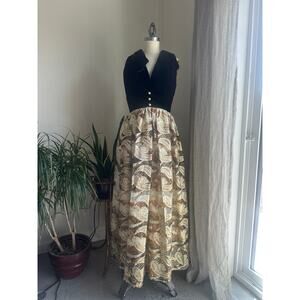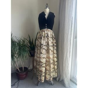 Vintage formal dress sheer lace metallic paisley velvet bodice classic eveningwear retro gown vintage glam boho elegant embroidered
