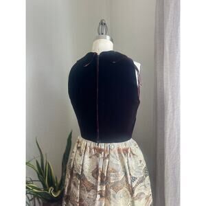 Women’s M Dress Chocolate Velvet Sleeveless Wing Collar Metallic Organza 60s